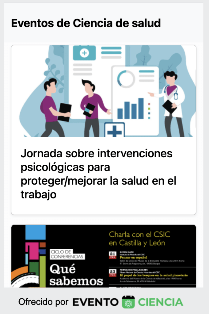 Instrucciones: Copia y pega el código en tu web para obtener todos los eventos de ciencia de España.
