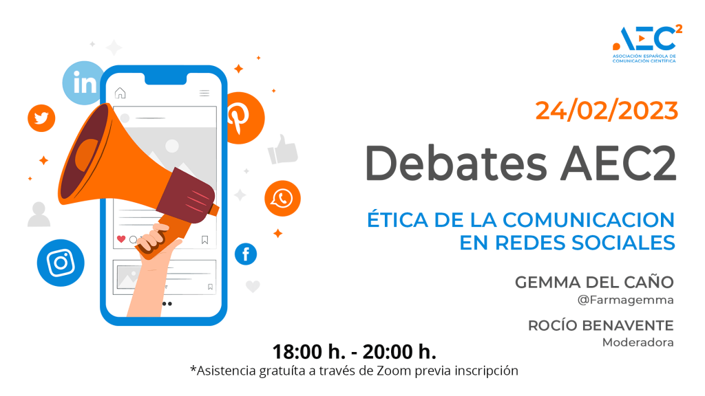 El próximo evento pondrá el foco en la ética de la comunicación en redes y tendrá lugar el viernes 24 de febrero a las 18:00h. Gemma del Caño (farmagemma), farmacéutica especializada en I+D e Industria y divulgadora muy activa en redes sociales, compartirá su experiencia personal con los asistentes. A continuación, habrá una mesa redonda moderada por Rocío Benavente en la que el público podrá plantear preguntas.
