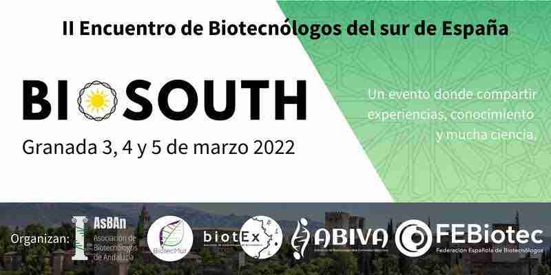 El segundo Encuentro de Biotecnólogos/as del Sur de España tendrá lugar en Granada el fin de semana del 3, 4 y 5 de marzo de este 2023. Este evento está organizado por la Asociación de Biotecnólogos de Andalucía (AsBAn), junto a la Federación Española de Biotecnólogos (FEBiotec) y el resto de asociaciones de biotecnología del sur. Además, en EventEX somos colaboradores oficiales de este encuentro. BioSouth busca poner en valor la investigación e innovación de alta calidad que se realiza en el sur de nuestro país, así como favorecer el contacto con personas dedicadas al sector, el intercambio de ideas y de experiencias en un contexto científico.