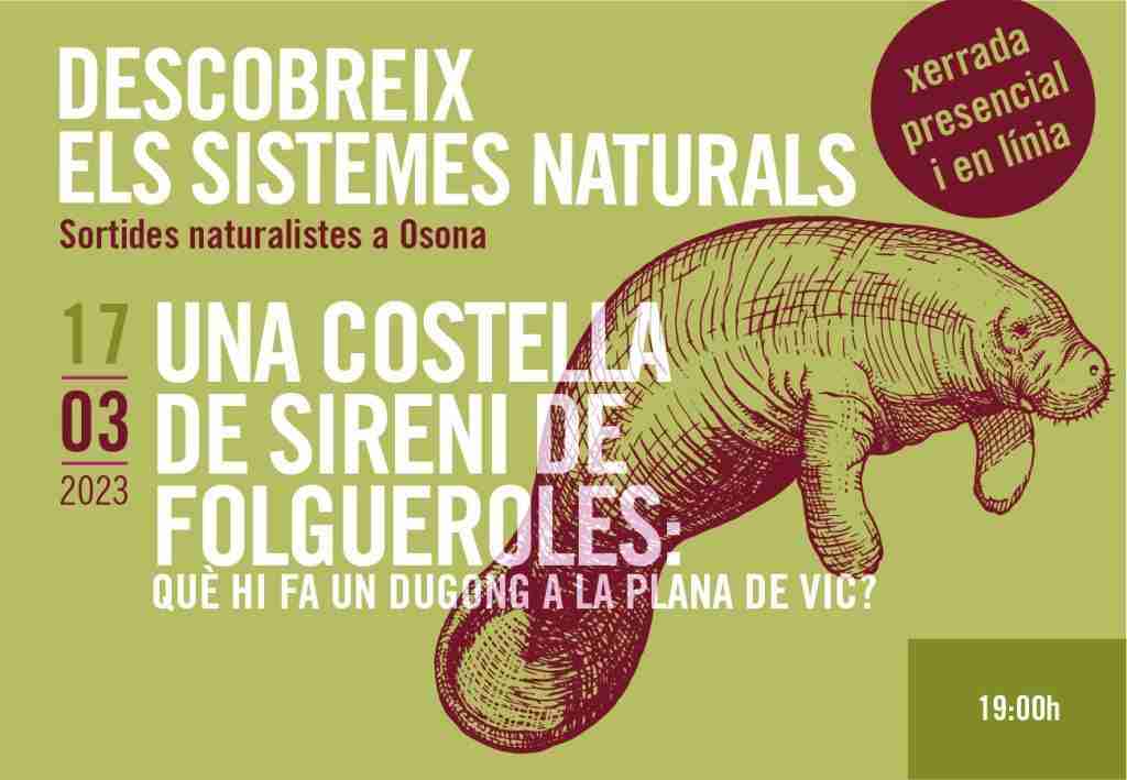 El geólogo Jordi Vilà nos presentará el hallazgo paleontológico de un mamífero marino realizado recientemente en Folgueroles. Se trata de una costilla que pertenece a un individuo del orden de los sirenios (que incluye los dugongs, manatís o vacas marinas), que vivió en el mar tropical del eoceno, en la actual Catalunya Central, ahora hace entre 48 y 37 millones de años.